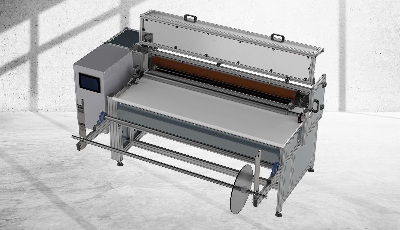 - Na konci se nařezaný materiál ukládá na stůl nebo se pomocí navíjecího zařízení převíjí na cívky.