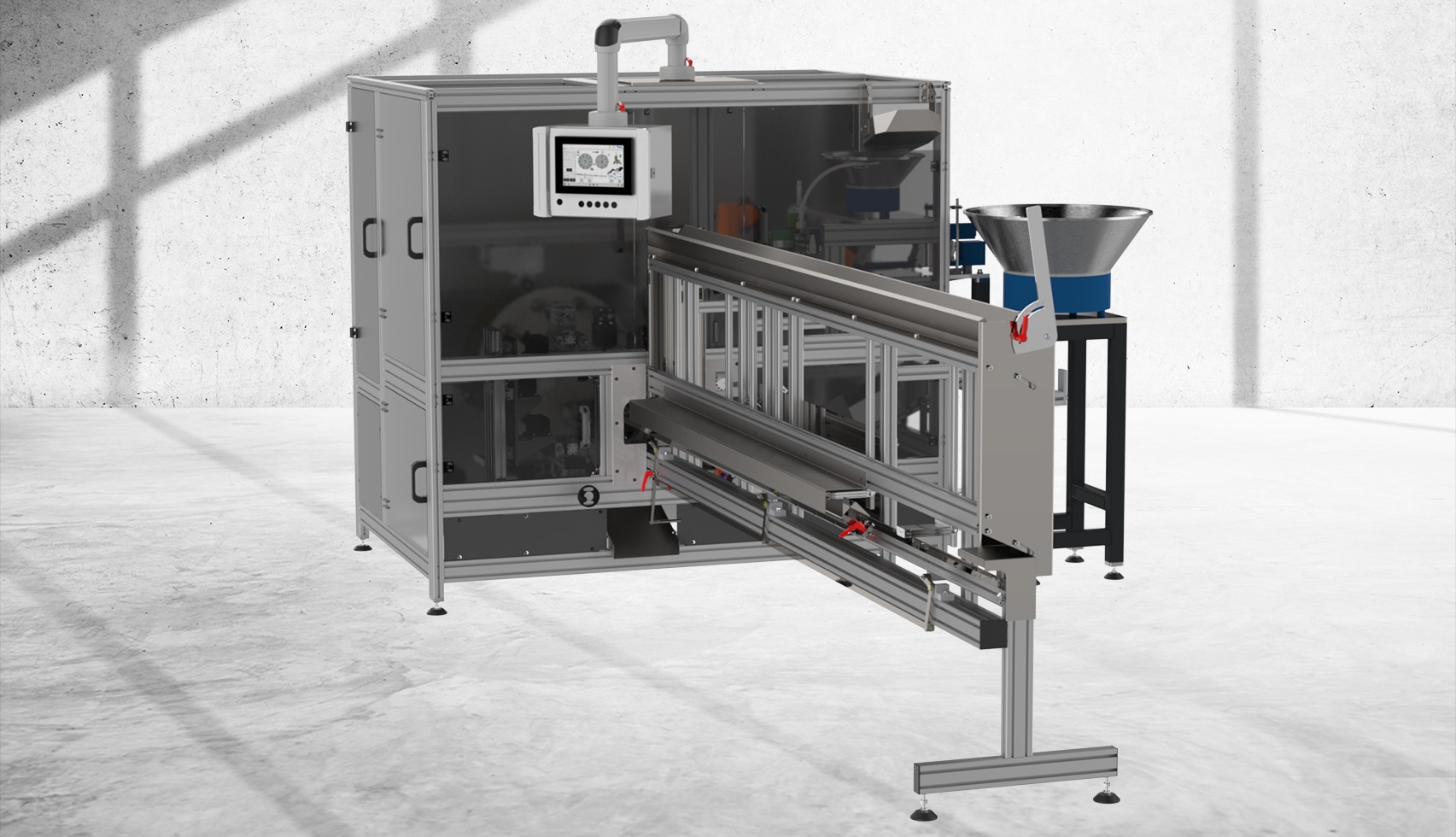 The machine consists of two carousels and one transfer station, two vibration hoppers and a long tube magazine. Each carousel can have up to 10 stations. The rollers can be made closed (folded) from one side, or not closed at all then caps are pressed from both sides. The machine is equipped with a very sophisticated control system with graphic control. The machine is designed for processing and assembly of radiator rollers (MINI). First the machine cuts the rollers from a long tube to a certain length, then sorts off the cuttings, after that the rollers are milled from inside, repeatedly heated up. Special jaws close following the assembly with the adapter, bearing or with cap.